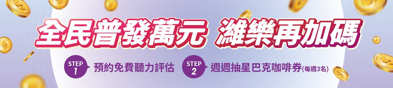 Step1.預約免費聽力評估 Step2.週週抽星巴克咖啡券(每週3名)